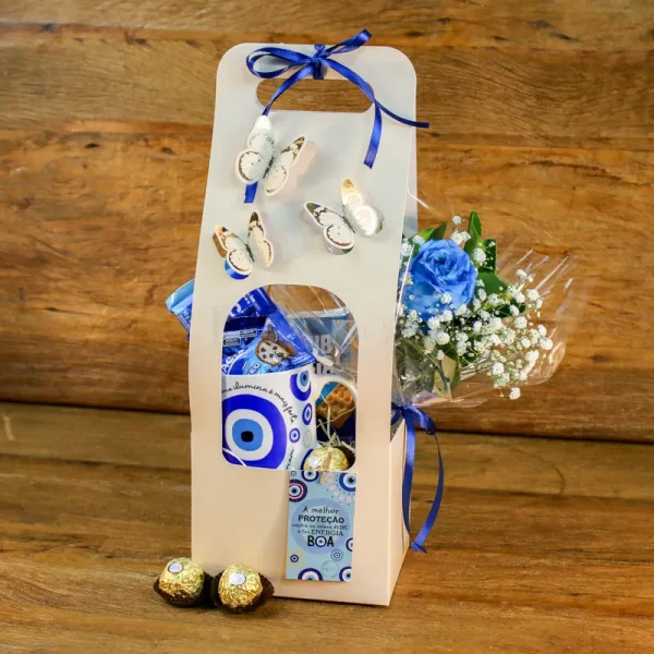 • 1 Mini buquê com 1 Rosa pintada de azul